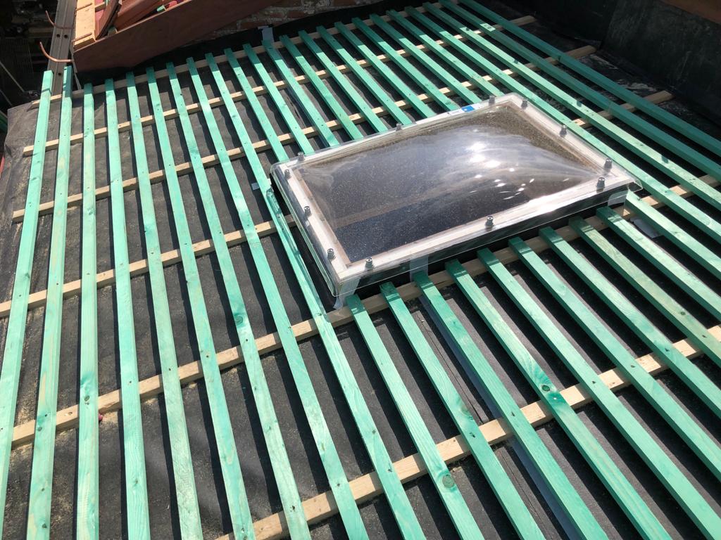 - Plaatsen van lichtkoepel en dakvensters